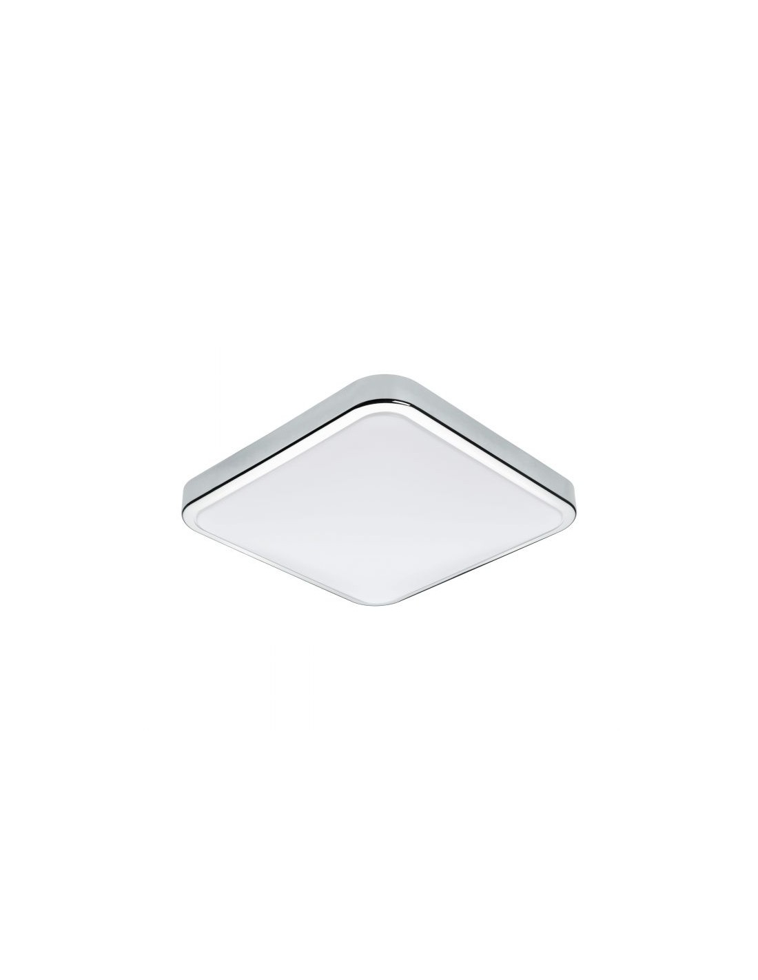 La lampada da parete MANILVA del brand EGLO presenta una struttura quadrata in metallo cromato e diffusore in policarbonato bianco.