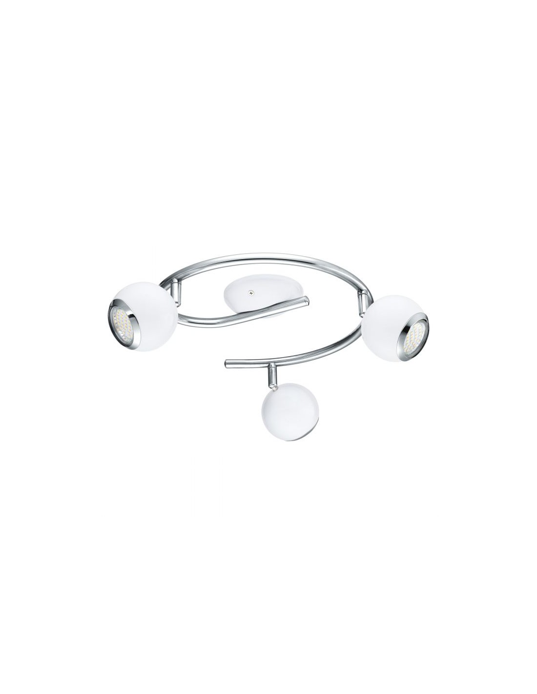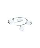 La lampada da soffitto BIMEDA del brand EGLO presenta una struttura in metallo composta da un braccio a girandola cromata sulla quali sono posizionati i 3 faretti a sfera di colore bianco.