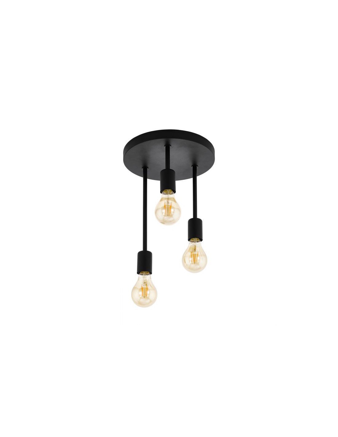 La lampada da soffitto WILMCOTE del brand EGLO presenta una base metallica rotonda, 3 bracci lineari con annessi portalampada.