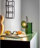 La lampada da tavolo MINIBOX, ideata nel 1981, richiama l’idea di lanterna dei minatori, un piccolo elemento luminoso che combina diversi stili, dal vintage al retrò sino al moderno.