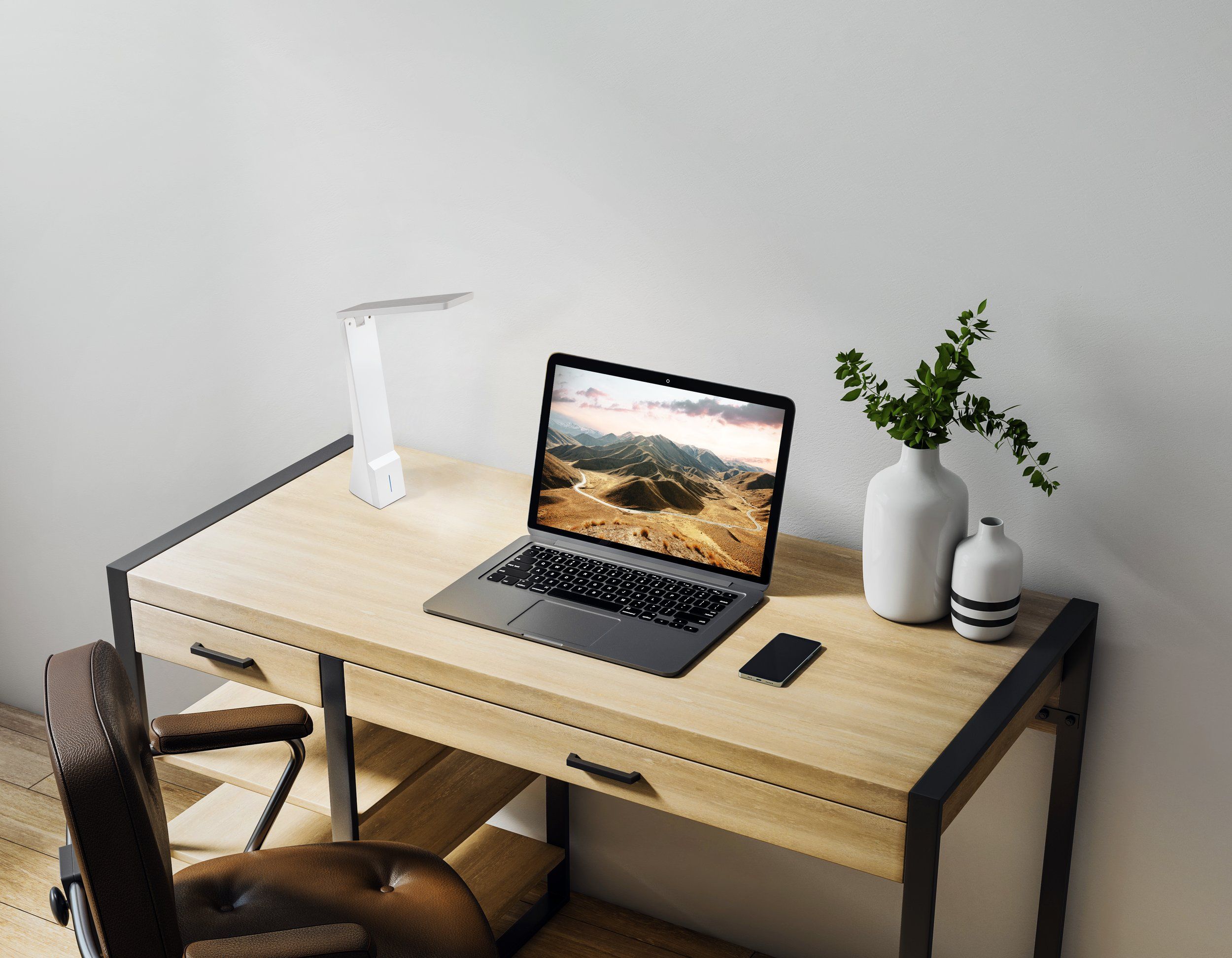La lampada da scrivania LA SECA del brand EGLO presenta una struttura in policarbonato di colore bianco. Interruttore touch.