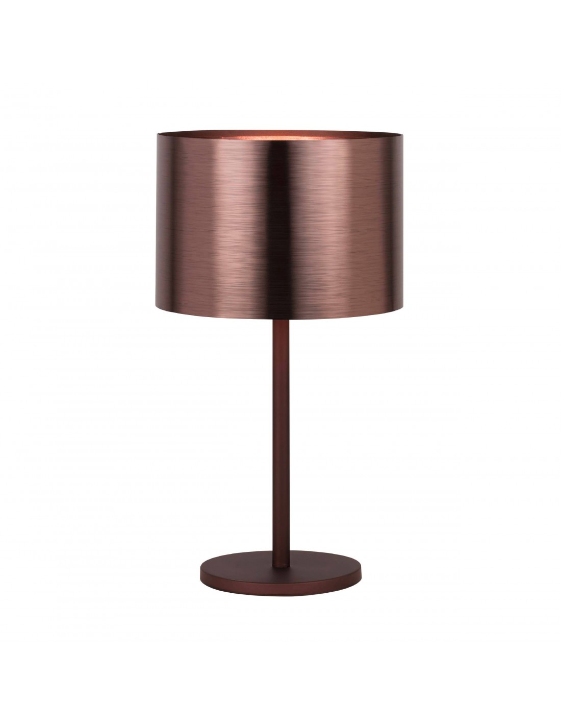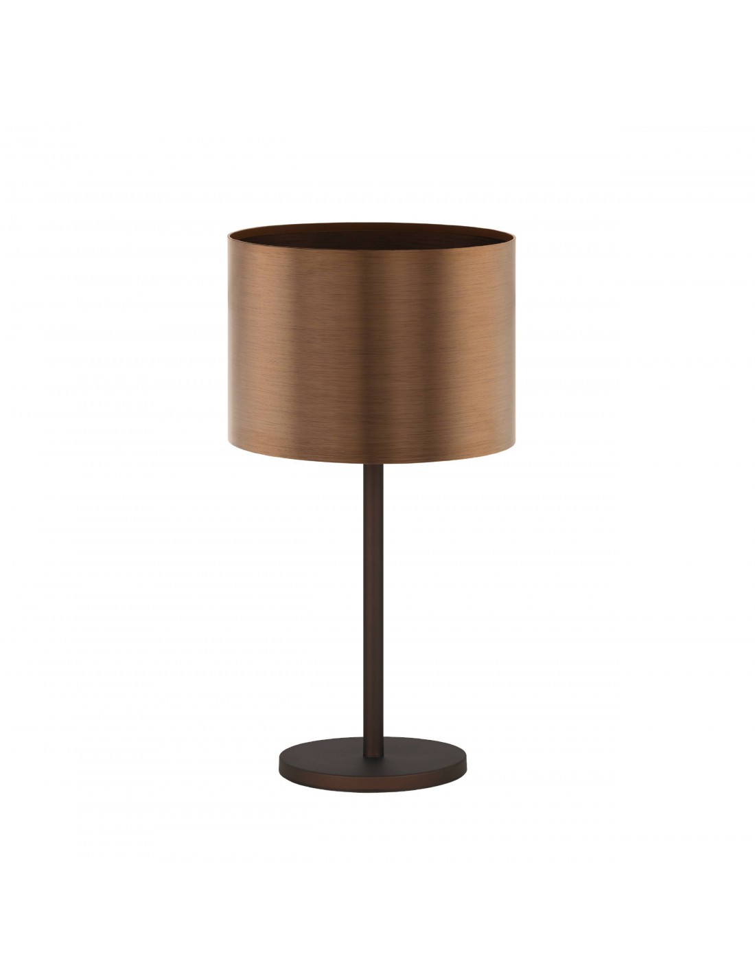 La lampada da tavolo SAGANTO del brand EGLO presenta un profilo semplice e lineare in lamina di metallo satinato con base tonda e diffusore cilindrico in policarbonato finitura marrone e rame.