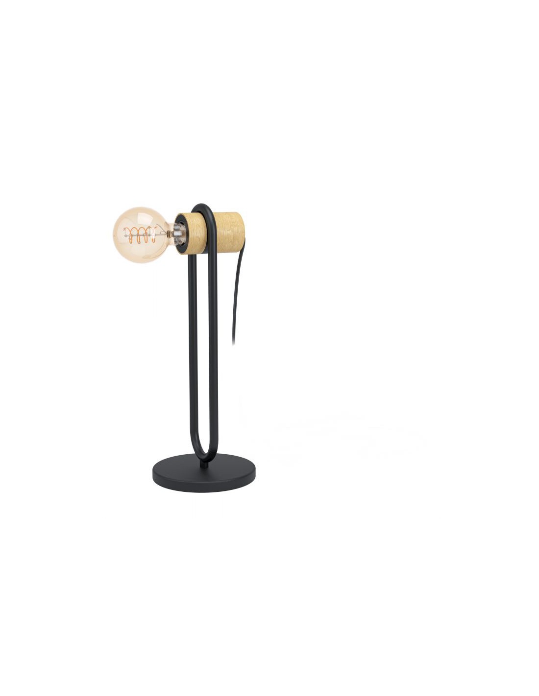 Lampada Da Tavolo Vintage Chieveley Nero Con Portalampada Legno Eglo