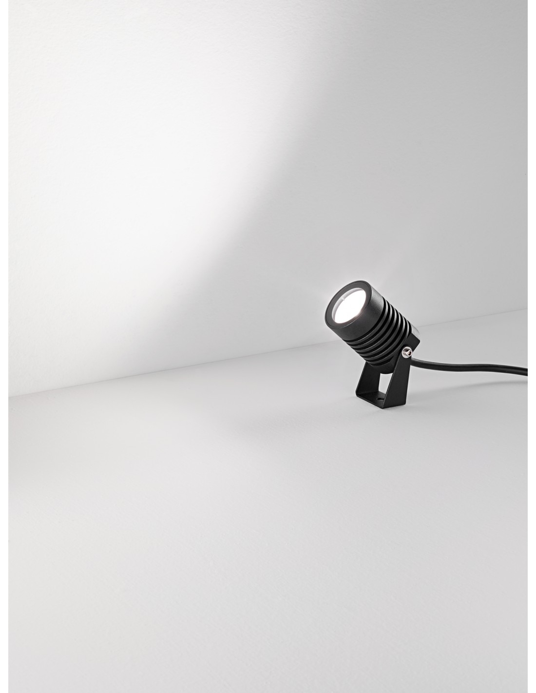 Faretto Lario del brand Isyluce realizzato interamente in alluminio verniciato nero con diffusore in vetro. Incluso 1 metro di cavo in neoprene.