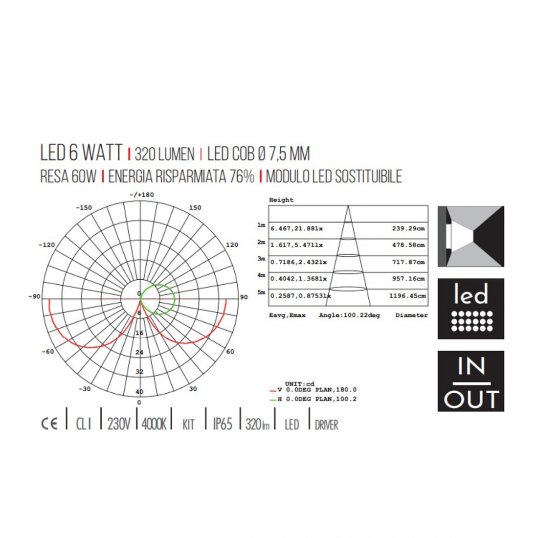 • Materiale: Alluminio e diffusore termoplastico satinato