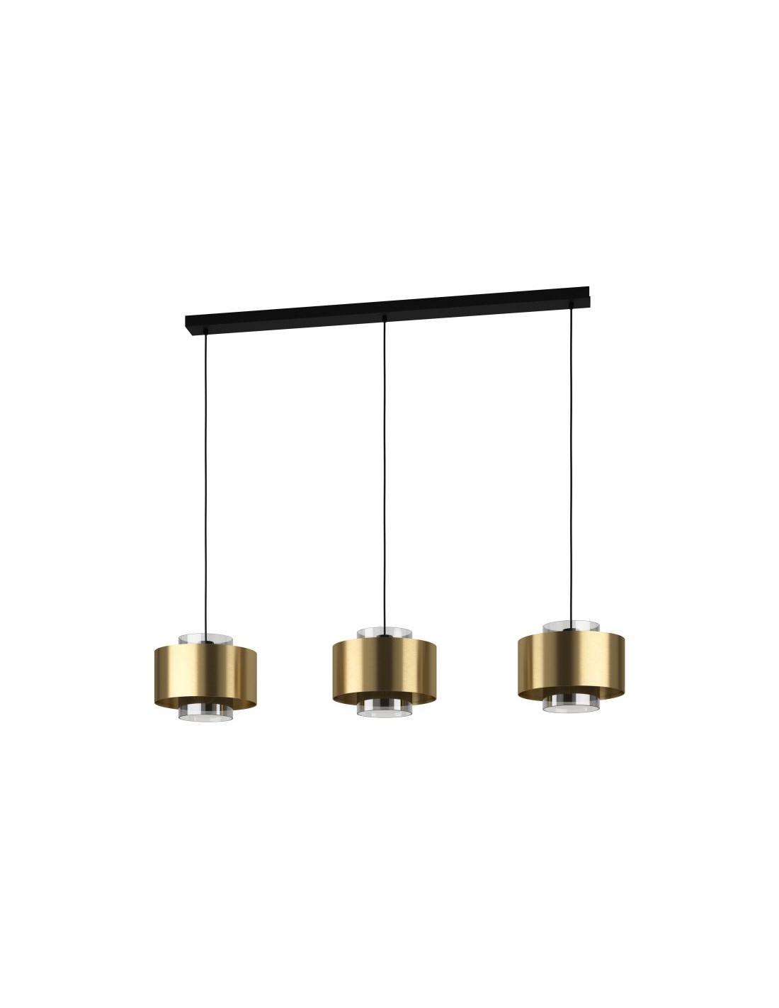 Lampadario 3 Luci Isola Design Cilindri Vetro Fumé Con Pellicola Oro Duglia Eglo