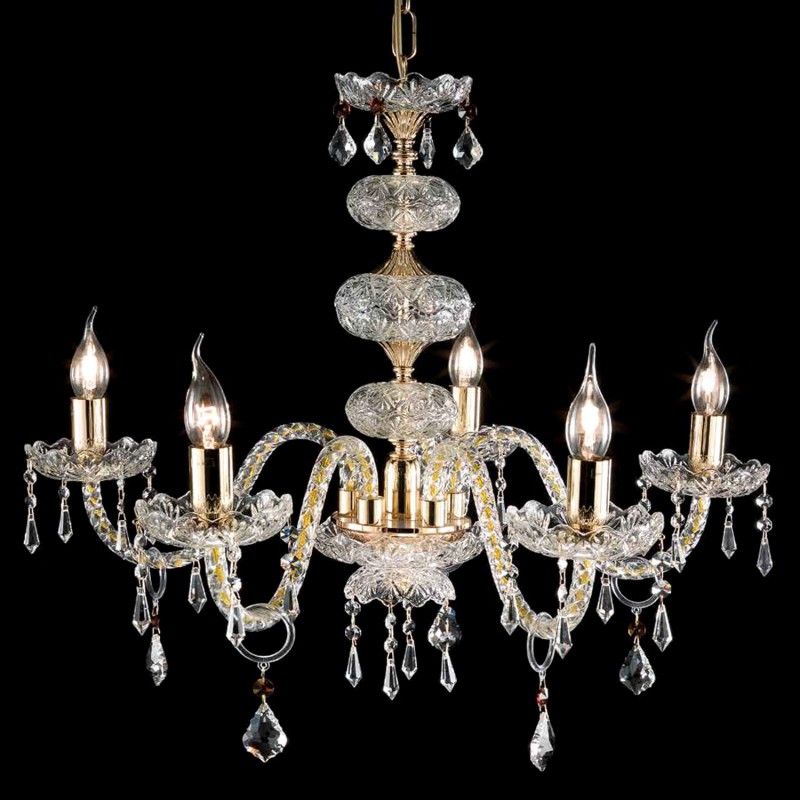 Lampadario 5 Luci Vetro E Cristallo Dallas Oro Ondaluce Ciciriello