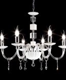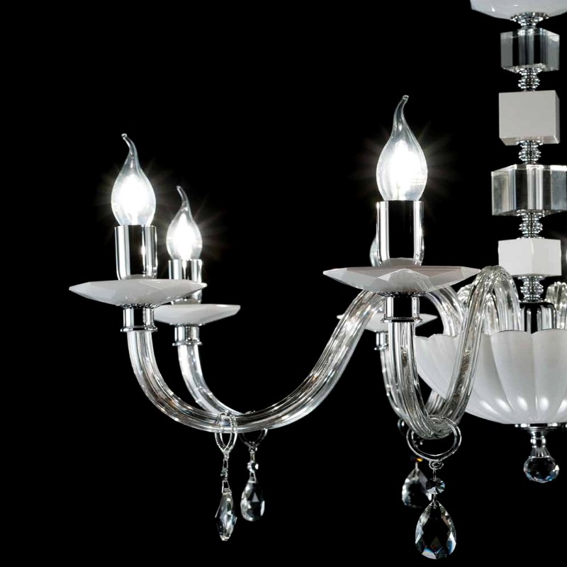 - Il lampadario a 6 luci della serie LIVIA é realizzato in vetro e cristallo bianco latte e trasparente con montatura in metallo finitura cromo.