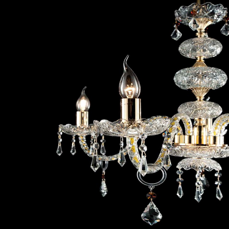 Lampadario 8 Luci Vetro E Cristallo Dallas Oro Ondaluce Ciciriello