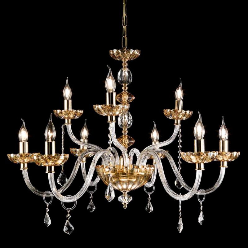 Lampadario 9 Luci Vetro E Cristallo Ambra Patricia Ondaluce Ciciriello