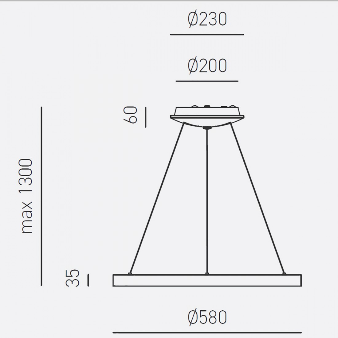 • Sospensione composta da un anello di 58 cm di diametro.