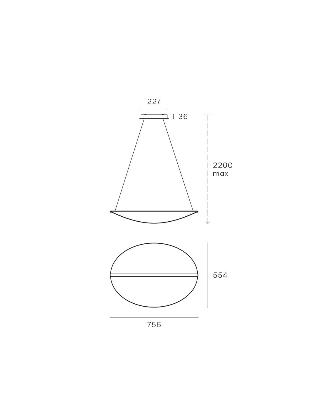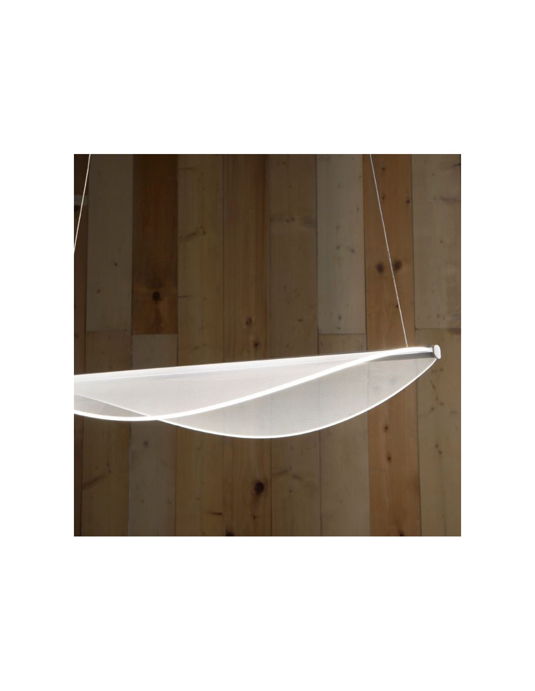 La sorgente a LED viene alloggiata all’interno di un’asta centrale in alluminio verniciato bianco. Cavetti regolabili che fungono sia da sostegno che da conduttori e permettono di variare l’altezza del diffusore in base le proprie esigenze.