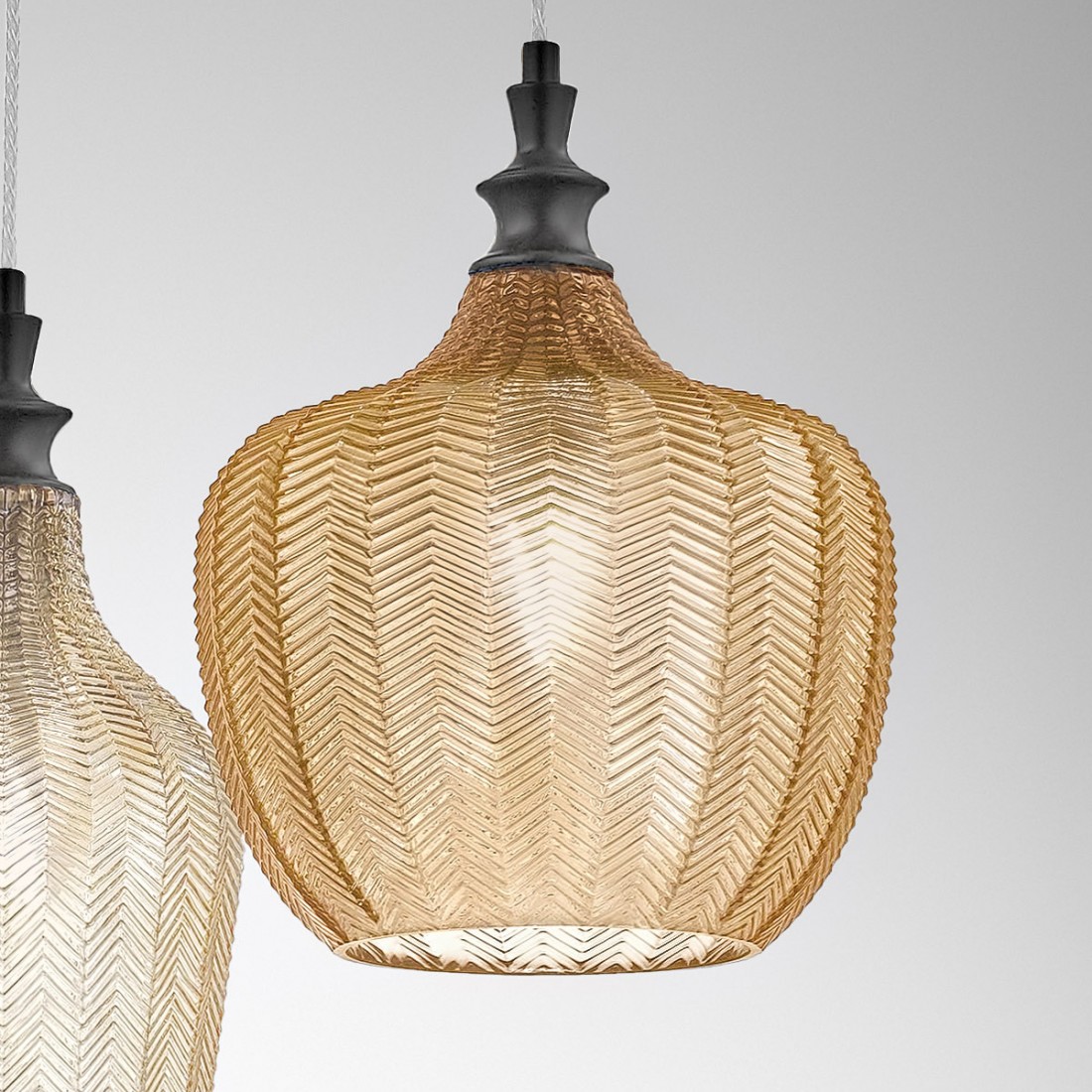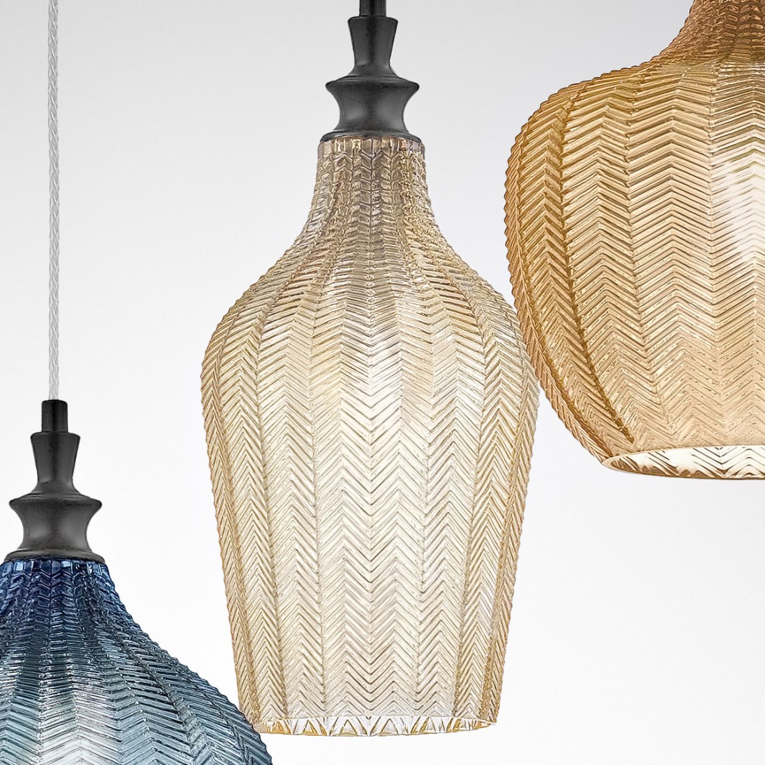 • Finitura vetri e quantità: 1 vetro ambra trasparente, 1 vetro ocra e 1 vetro cobalto.