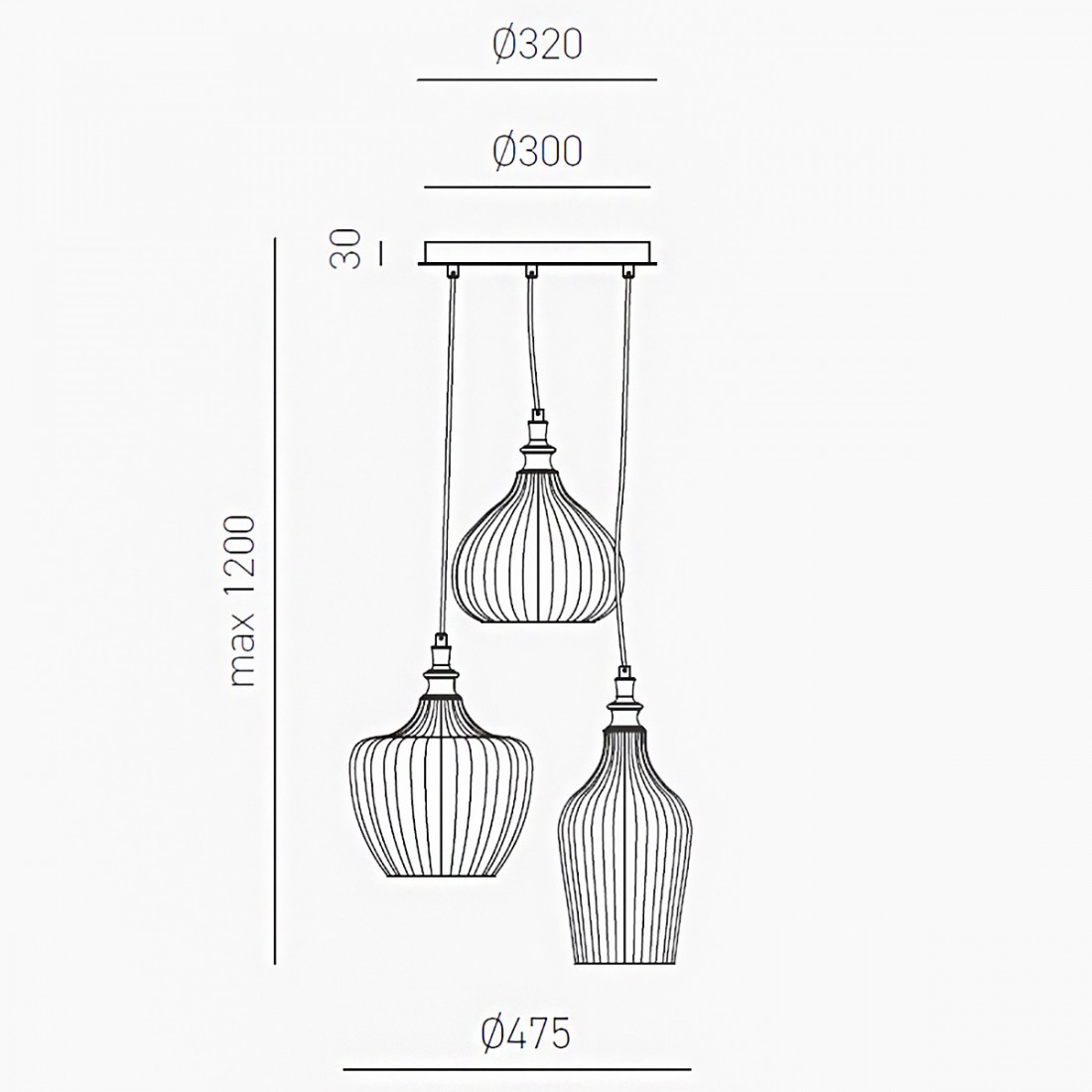 • Il lampadario è provvisto di 3 portalampade attacco E27 per lampadine a led.