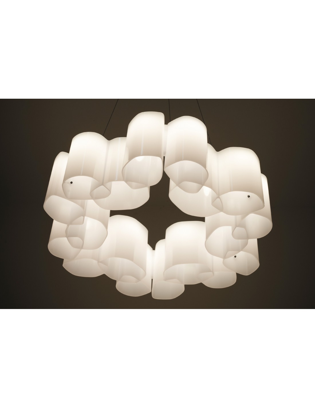 Un lampadario di alto design che crea affascinanti sfumature, ideale per illuminare in maniera diffusa e al contempo arredare diverse tipologie di ambienti.