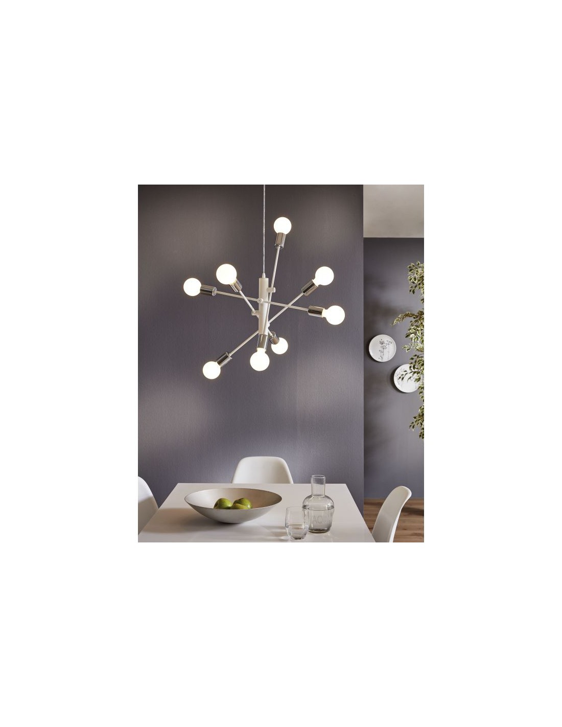 Dotato di 8 portalampada con attacco E27, lampadine acquistabili separatamente scegliendo la potenza e la gradazione di luce in base alle vostre necessità.