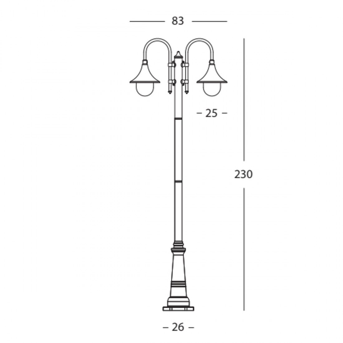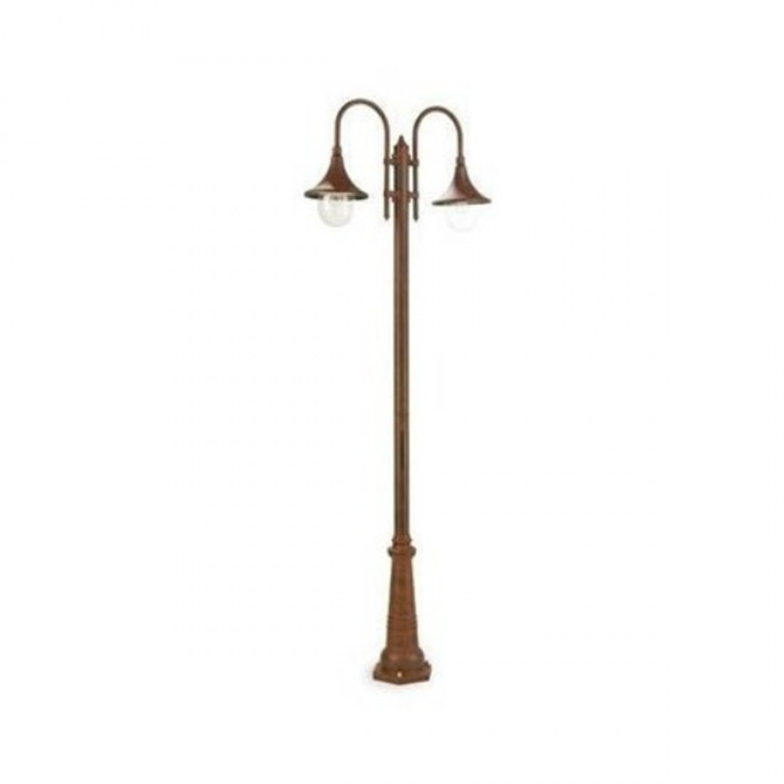 • Il lampione ha una struttura in alluminio di colore ruggine o nero, il diffusore in materiale termoplastico trasparente con parabola interna in alluminio riflettente, una sagoma per controllare la tracciatura o foratura per fissaggio a terra, dispositivo di connessione ed accessori per il fissaggio a terra. La linea LAMPARA è la scelta migliore per arredare l’esterno con gusto ed un tocco di fresca stravaganza, un modello classico intramontabile che non passa mai di moda, due luci diffuse ma rivolte verso il basso adatta ad ambienti come giardini, porticati, viali, la lampada ha un grado di protezione IP43 (protezione contro la penetrazione di corpi solidi di dimensioni superiori ad 1 mm – protezione contro la pioggia con caduta fino a 60° di inclinazione) quindi adatto ad ambienti esterni.IL corpo illuminante è provvisto di due portalampade in porcellana attacco E27 per lampada a LED con un altezza massima di 15 centimetri, una tensione di alimentazione 220/240V quindi non necessita di trasformatore. Il led è una luce innovativa con le caratteristiche di elevata affidabilità, lunga durata, elevata efficienza e un risparmio energetico, per sostituire tutte le lampade ad oggi usate. Il palo ha un altezza di 230 centimetri, un diametro della base a terra di 26 centimetri, una sporgenza di 83 centimetri ed un diametro del diffusore di 26 centimetri. L’istallazione è prevista a terra con tasselli (inclusi).La manutenzione risulta estremamente semplice necessitando di semplice panno inumidito per togliere la polvere in eccesso. Lampada esclusa.