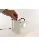 Composta da una struttura in metallo di colore bianco e un occhio luminoso con diffusore in vetro trasparente. Grazie allo snodo con aggancio magnetico la testa potrà essere orientata a piacimento in modo di indirizzare il flusso luminoso in punti specifici di interesse.