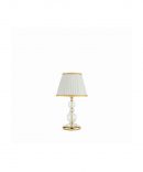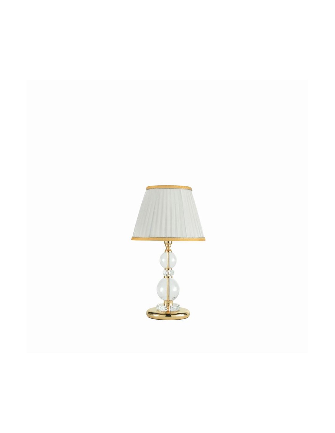 • La lampada da tavolo della serie BACH é realizzata in vetro trasparente lavorato a mano con dettagli in metallo finitura oro oppure cromo, e paralume in tessuto.