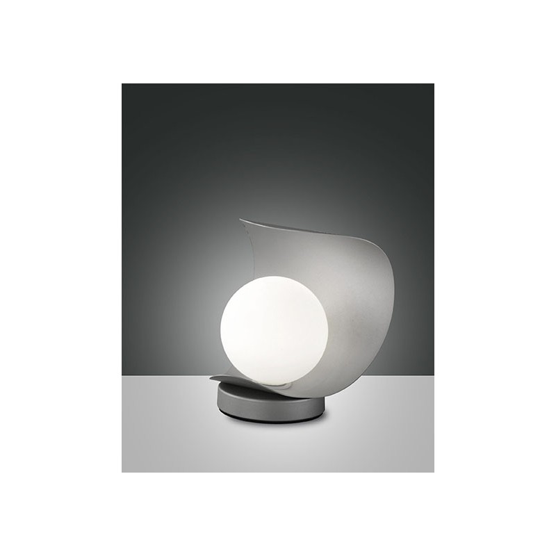 • La lampada da tavolo Adria è composta da una struttura in metallo su cui é montata una sfera realizzata in vetro soffiato. La struttura é disponibile in bianco, argento oppure oro opaco.