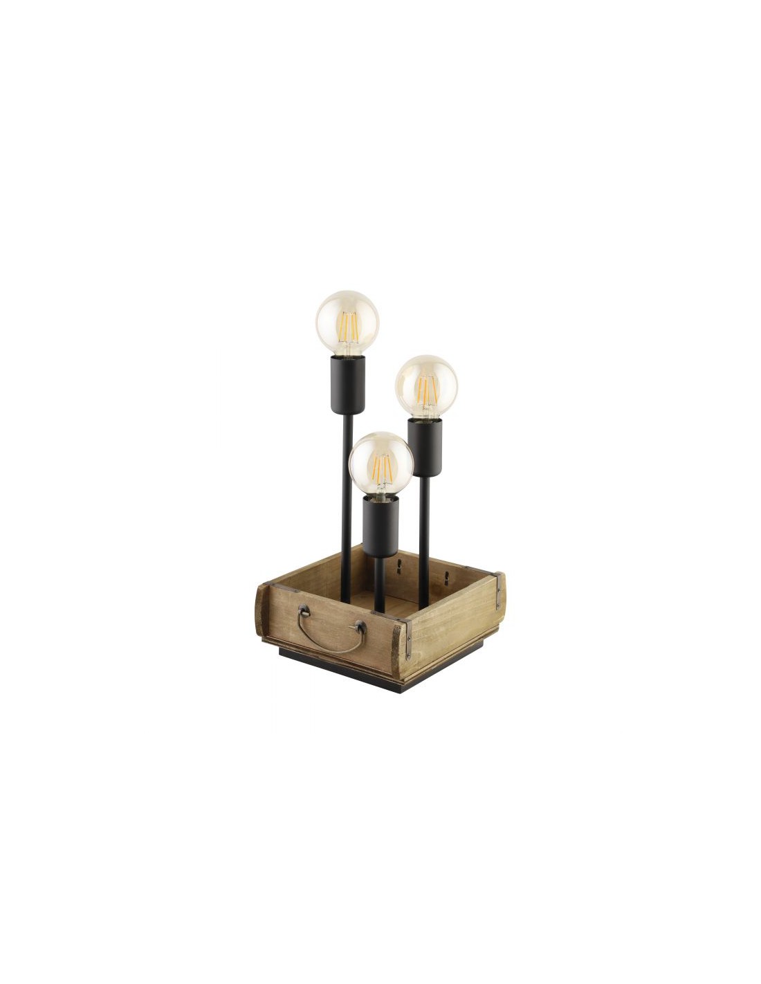 Il lumetto WOOTTON del brand EGLO presenta una struttura in metallo nero. La base è composta da un cassetto in legno naturale, dove all’interno vi sono collocati i 3 portalampada con attacco E27.
