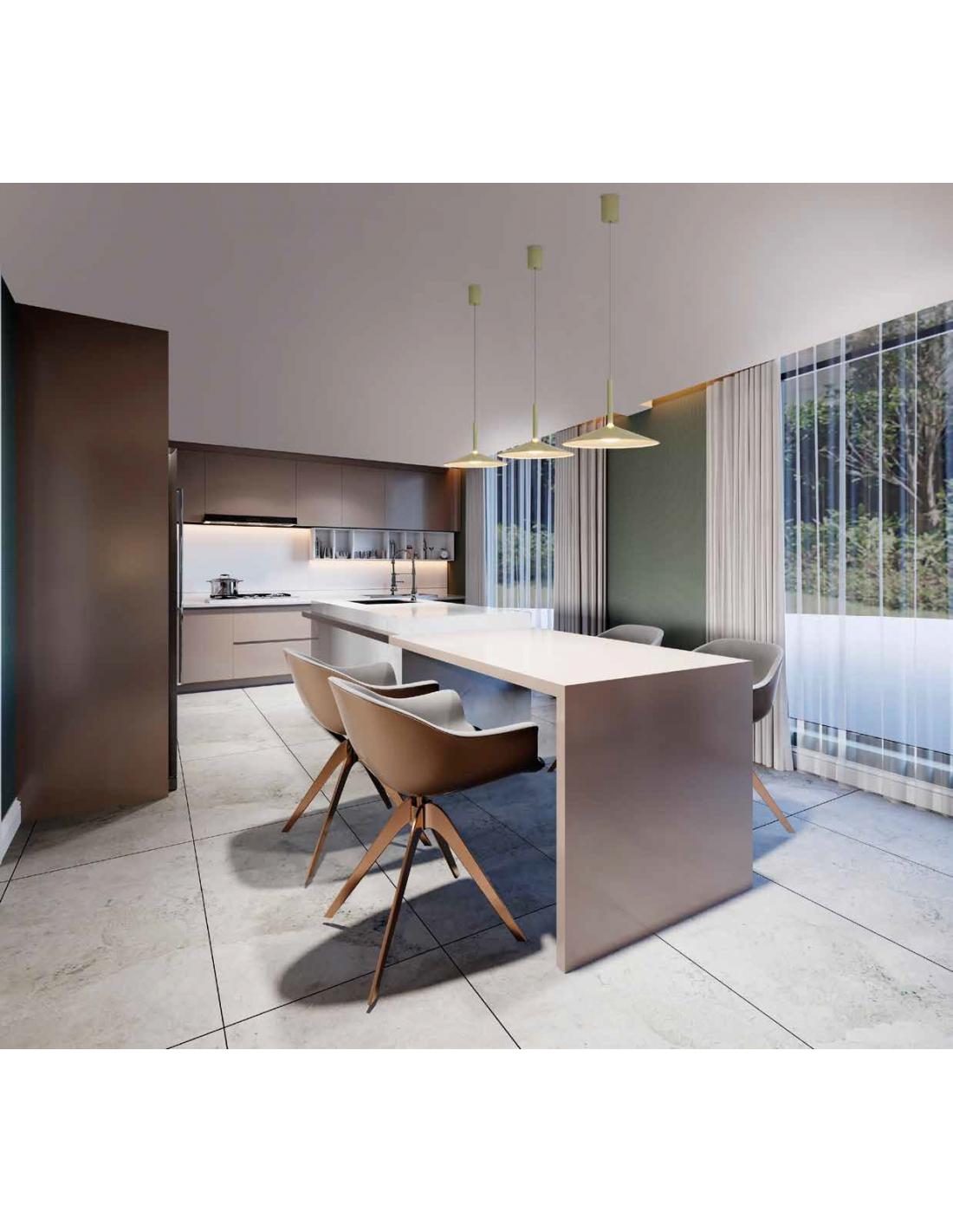 Lampada da sospensione con struttura in metallo e led integrato. Altezza regolabile con un semplice gesto della mano da un minimo di 40cm a un massimo di 2m.