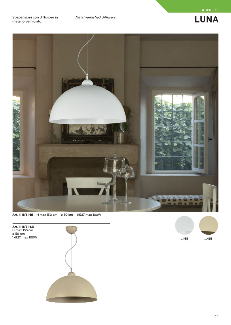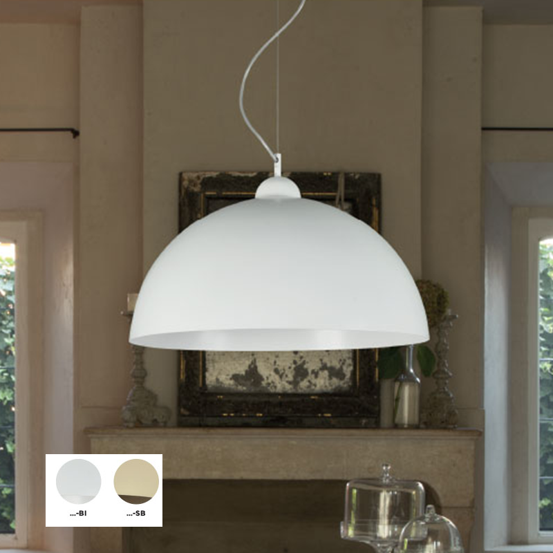 La sospensione LUNA di PADANA LAMPADARI, è dotata di diffusore a cupola in metallo verniciato bianco Linea moderna, innovativa e di grande impatto visivo, per ambienti contemporanei dal design minimal.