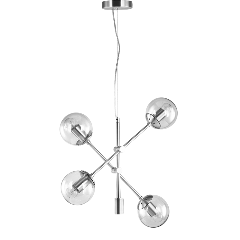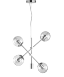 La sospensione GIOKO di PADANA LAMPADARI, è dotata di struttura in metallo nero, bianco o cromo lucido e diffusori decorati fumè , ambra o vetro cristallo . Linea moderna, innovativa e di grande impatto visivo, per ambienti contemporanei dal design minimal. Lampadario 4 luci di semplice ed estremo design che dona un tocco di calore alla stanza grazie ai vetri colore ambra. Una sospensione con bracci orientabili adatta per qualsiasi stanza e tipo di arredamento .. per un’illuminazione diffusa e d’effetto