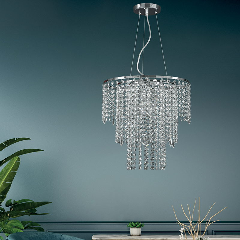 PADANA LAMPADARI Sospensione media TRESOR metallo cromo e cristalli al piombo