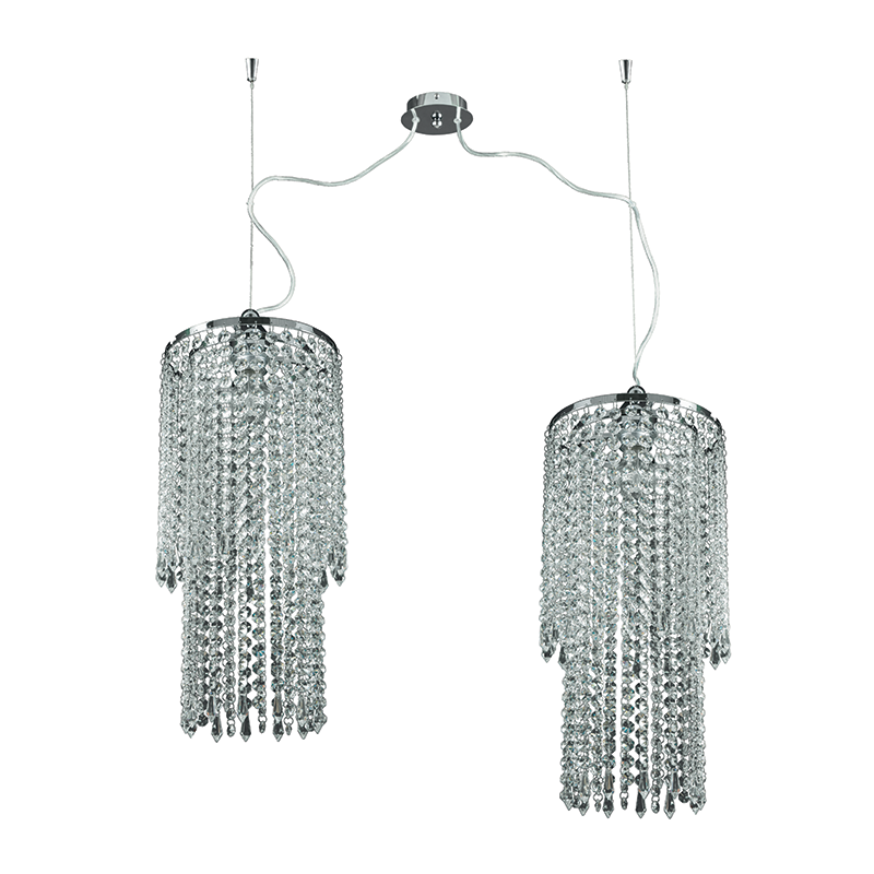 Sospensione moderno TRESOR di PADANA LAMPADARI composta da due calatine in cristallo trasparente che donano movimento e brillantezza nella stanza. Un lampadario che illumina e al tempo stesso arreda l’ambiente, un modello di trasparenza e movimento che crea nella stanza uno spettacolare effetto scenico. Classico e moderno trovano lo stesso percorso. Struttura in metallo cromo lucido e diffusori formati da file di cristalli al piombo.