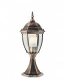 Struttura in pressofusione di alluminio finitura nero patinato oro, diffusori in vetro molato trasparente.