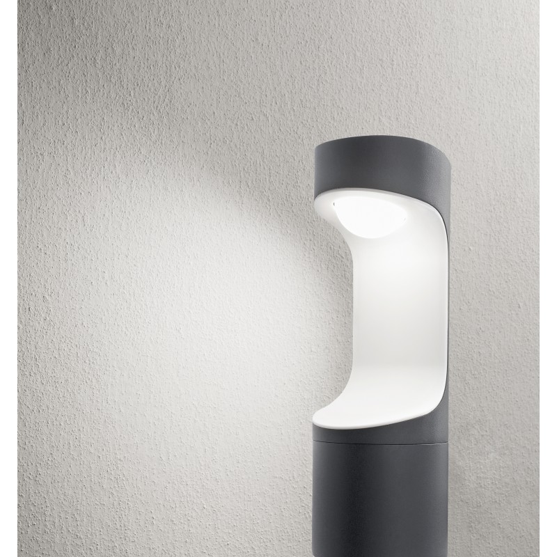 Lampada da terra per esterno modello ANHUR (altezza 30 cm) realizzato con struttura in alluminio finitura grigio antracite e particolare interno colore bianco opaco, diffusore in policarbonato opale.