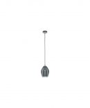 La piccola sospensione Estanys del brand EGLO è composta da una struttura in metallo finitura nichel scuro e diffusore in vetro nero trasparente.