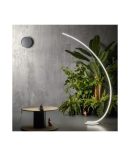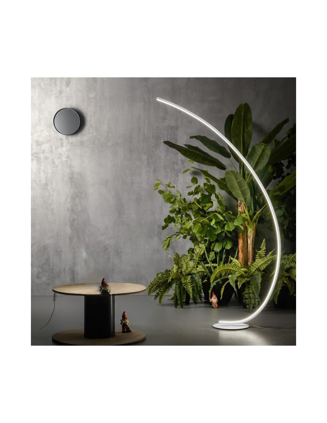 IOLE PT é una lampada da terra del marchio Gea Luce composta da un profilo curvo in alluminio satinato con diffusore in silicone bianco opale.
