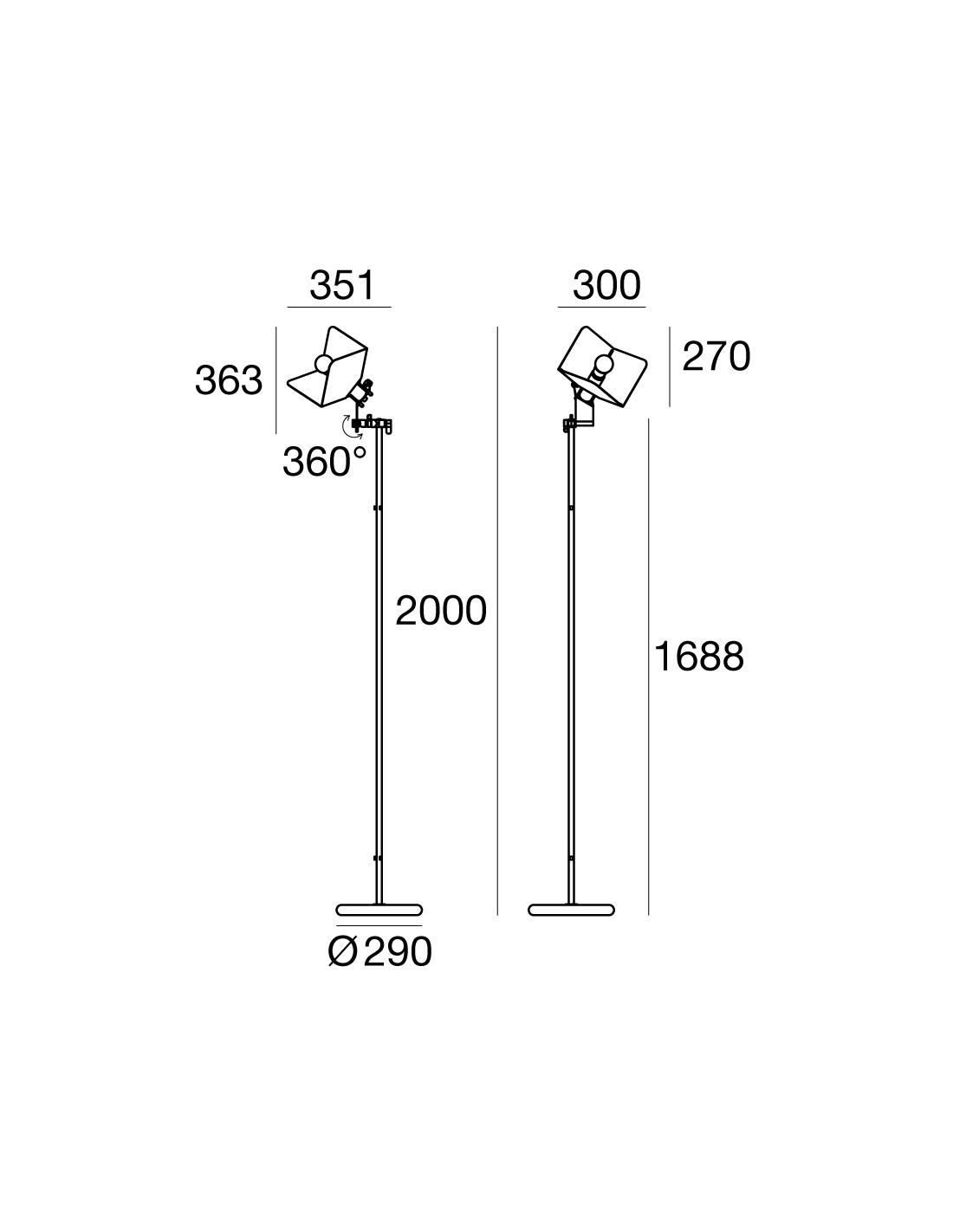 Una piantana dal design minimale, un apparecchio luminoso funzionale, che andrà ad illuminare in maniera ampiamente diffusa punti specifici di interesse.
