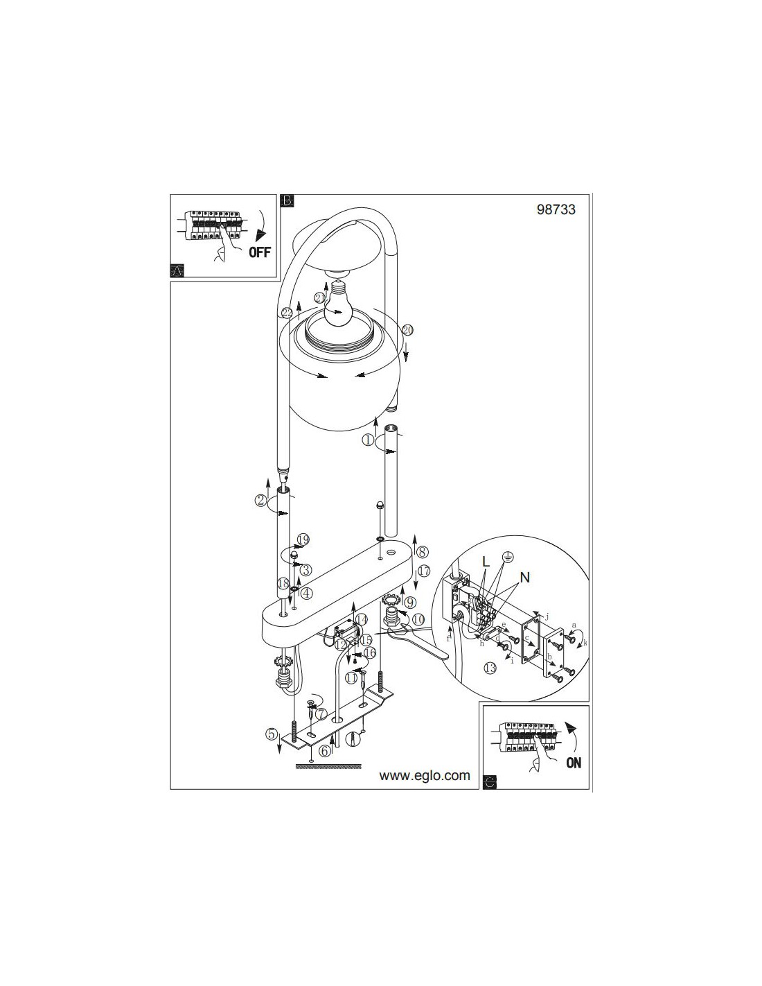 Articolo dotato di alloggio per lampadina E27 da max 28 watt. Si consiglia l’utilizzo di lampadine a filamento Led per una migliore resa luminosa e al contempo un basso consumo.