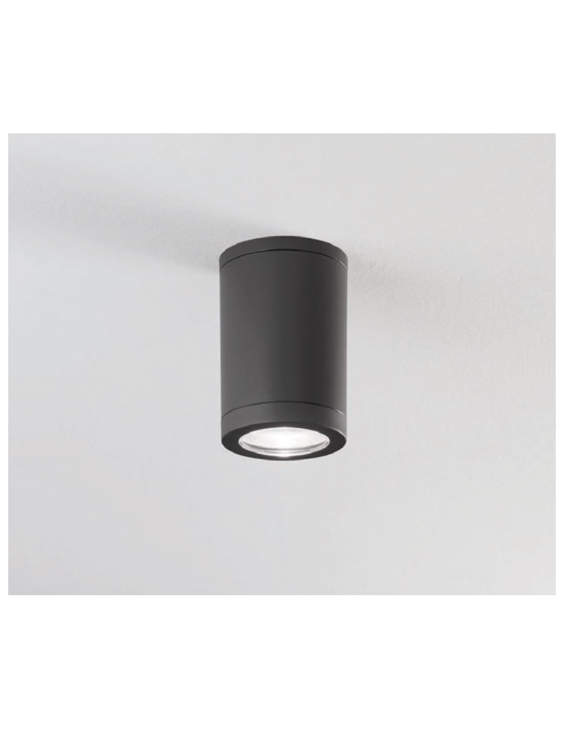 Lampada da soffitto spot serie E-SEA di Isyluce dalla forma cilindrica realizzata in policarbonato e ABS, indicato per installazioni in ambienti esterni in aderenza al soffitto tramite il supporto in metallo di cui è dotato.