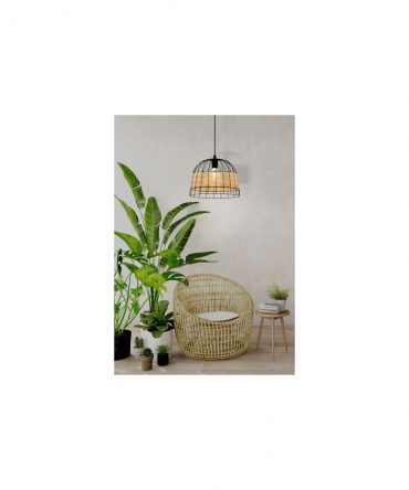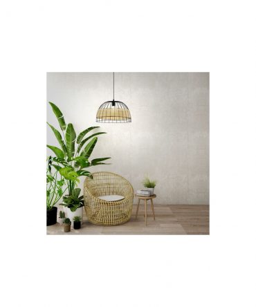La plafoniera della serie ANWICK del brand EGLO presenta una piastra metallica rettangolare di colore nero e 3 spot con diffusori orientabili decorati con intreccio in vimini finitura legno naturale.