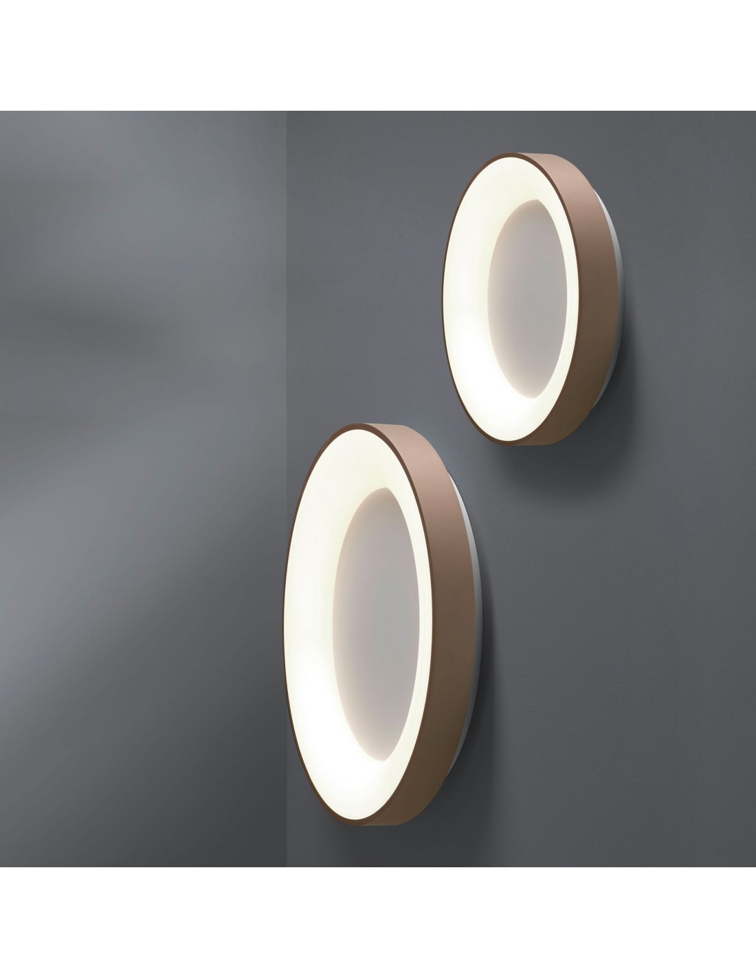 La plafoniera/applique INNER R del marchio VIVIDA INTERNATIONAL presenta un corpo lampada rotondo in alluminio finitura sabbia e diffusore in acrilico bianco.