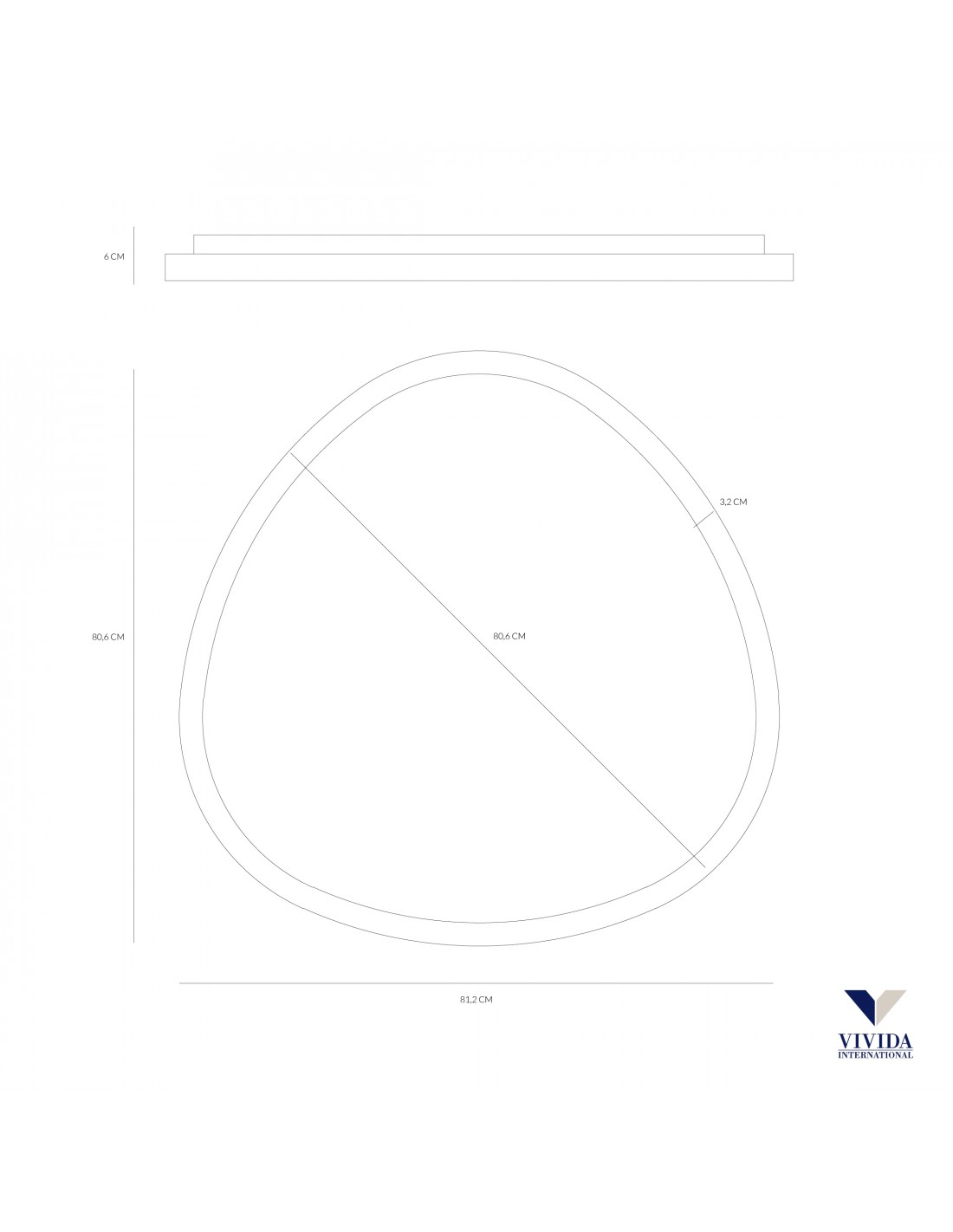 Plafoniera Applique Lifering Ovale Bianco Led 60w L81,2 cm Vivida International