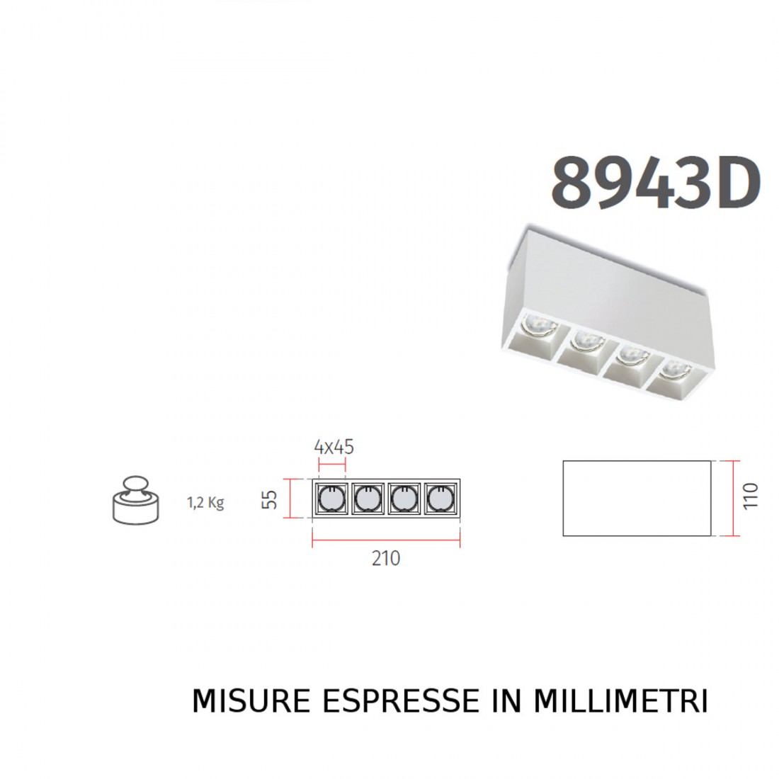 Plafoniera Belfiore Banister Small 8943 D GU10 LED 4 luci gesso bianco verniciabile rettangolare