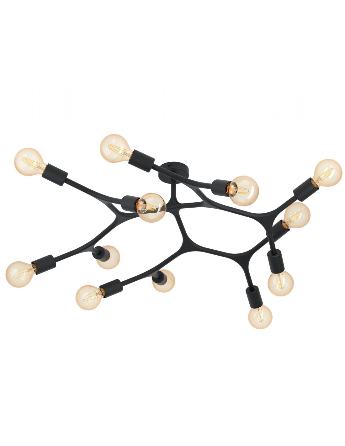 La plafoniera BOCADELLA del brand EGLO presenta una struttura in metallo finitura nero con 12 portalampada E27.