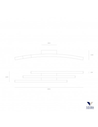 Plafoniera Bow Nero 3 Bacchette Led 36w Vivida International