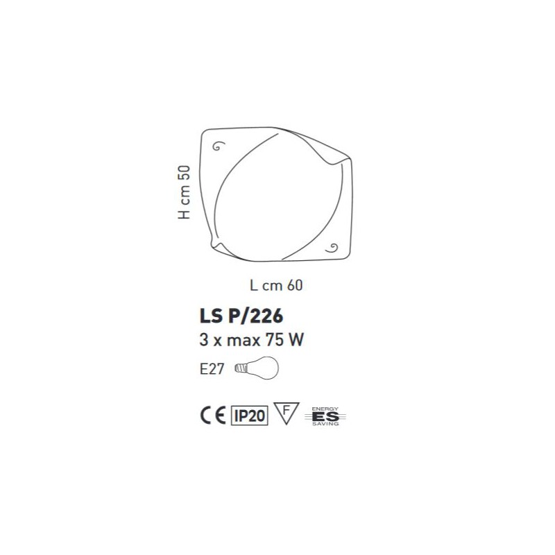 • Lampadine: 3 x E27 Led – Fluo – Alo (non incluse)