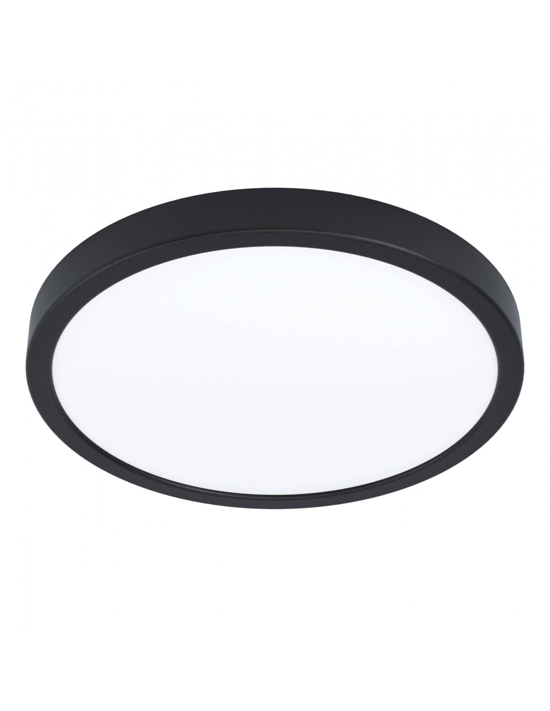 La plafoniera FUEVA del brand EGLO presenta un profilo semplice in metallo finitura nera e diffusore in policarbonato bianco, diametro 21 cm.