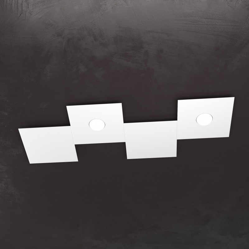 La plafoniera a 2 luci della collezione ECCENTRIC è composta da 4 sottili piastre quadrate in metallo, due con portalampade e due che fungono da elementi decorativo, che possono essere assemblate tra loro in diversi modi per comporre il disegno geometrico che più soddisfa le vostre esigenze.