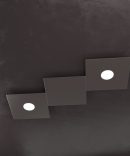 La plafoniera a 2 luci della collezione ECCENTRIC è composta da 3 sottili piastre quadrate in metallo, due con portalampade e una che funge da elemento decorativo, che possono essere assemblate tra loro in diversi modi per comporre il disegno geometrico che più soddisfa le vostre esigenze.