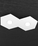 La plafoniera a 2 luci della collezione Hexagon è composta da una sottile lastra in metallo dalla forma di 2 esagoni uniti assieme, verniciato in bianco.