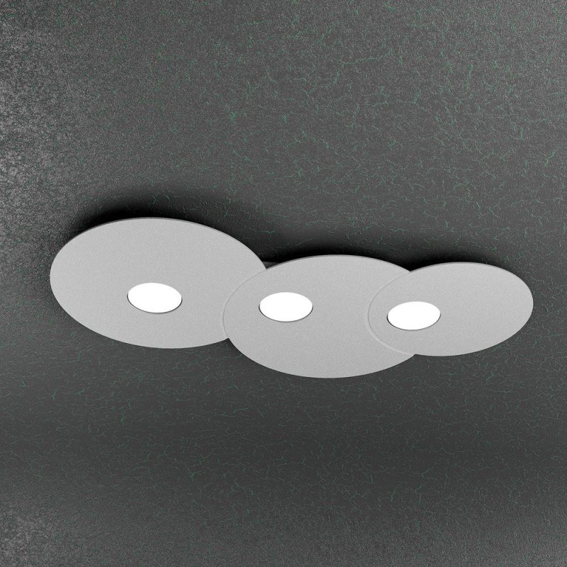 Questa plafoniera della serie Cloud, prodotta dal brand italiano Top Light, è composta da una sottile lastra in metallo verniciato, con incisioni che ne definiscono la forma.