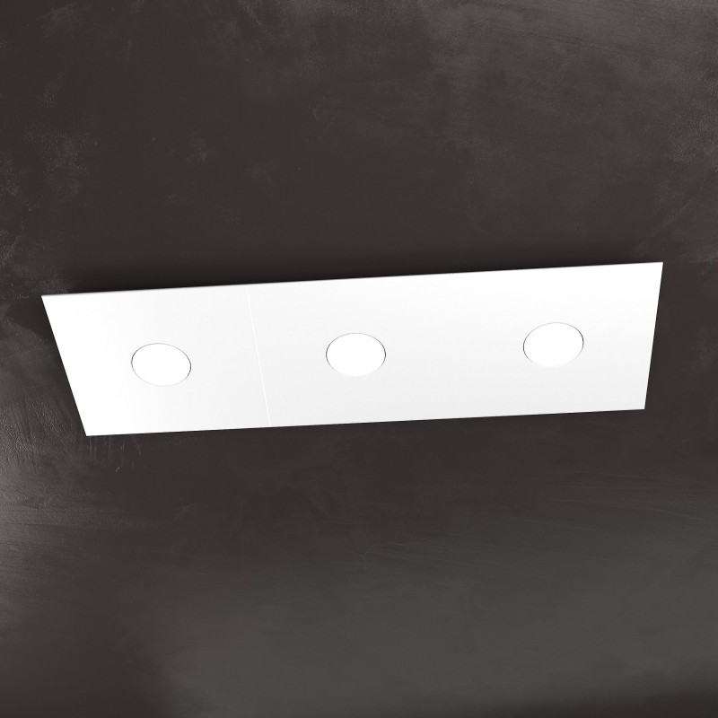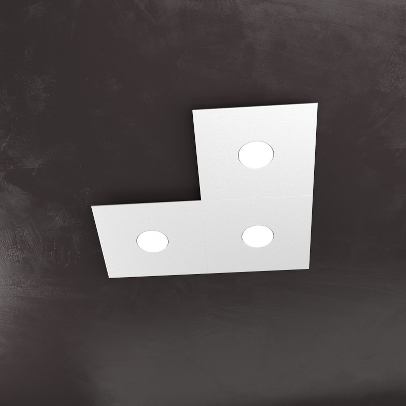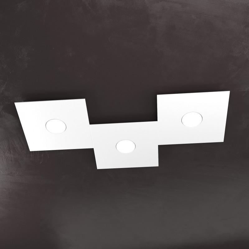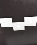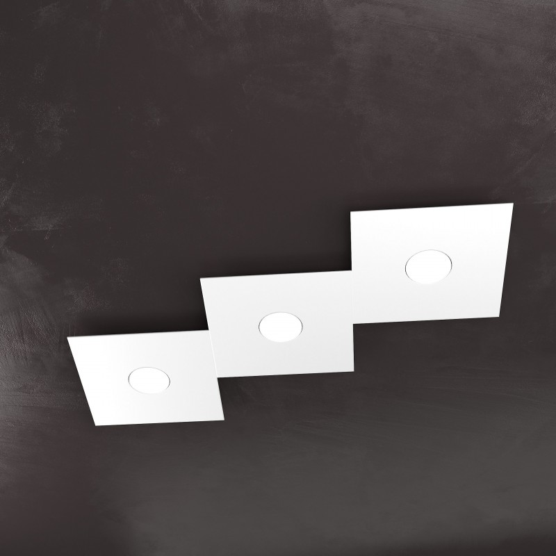 La plafoniera a 3 luci della collezione ECCENTRIC è composta da 3 sottili lastre quadrate in metallo che possono essere assemblate tra loro in diversi modi per comporre il disegno geometrico che più soddisfa le vostre esigenze.